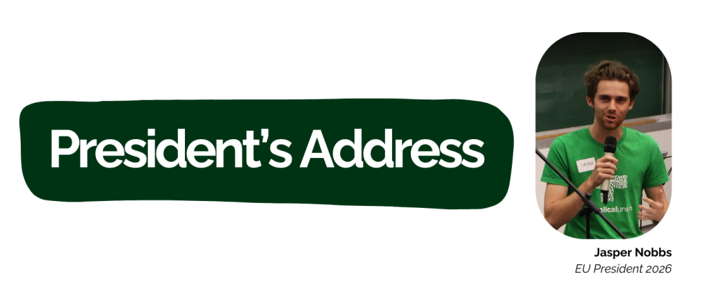 I was recently struck by the fruit of your support while attending the 2025 AFES Student Committees Training Conference just before NTE. It was there that I was able to meet many other AFES committee members from every state and territory of Australia. Many of whom I discussed the EU with were blown away by the scale at which it operates, with some of the groups having fewer members than the EU has staff. This revelation served as quite the encouragement to them (and me) that there are so many people willing to support the EU to allow for such a reality.